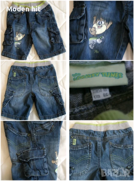 2. Цена 3 евро.. Дънкови панталонки Looney Tunes. 100% памук. Размер 18 м./86 см. Отлични. Дължина: 34,5/16 см.; талия на ластик: от 24 до 35 см.