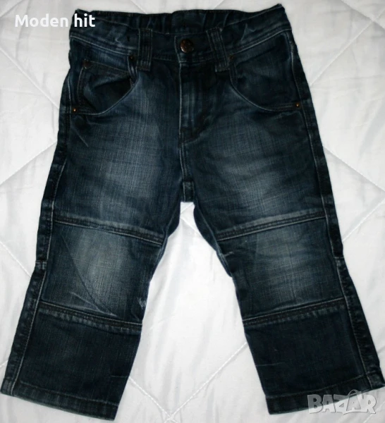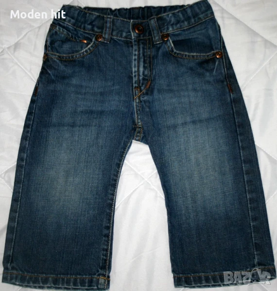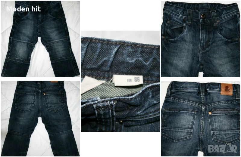 3. Цена 4 евро. Дънки H&M. Външно като нови. 100% памук. По етикет са размер 12-18 м./86 см. Дължина: 46,5/28 см., талия с ластик и копчета за корекция: максимум до 30 см., ханш: 34 см.