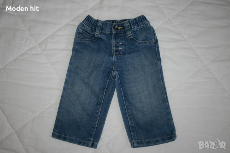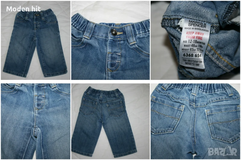 4. Цена 3,50 евро. Дънки Marks&Spenser. По етикет са размер 12-18 м./84 см. Дължина по външен шев: 43 см., по вътрешен: 24,5 см. Талия на ластик: от 21 до 27 см. Ханш: 30 см. Отлични, без забележки.