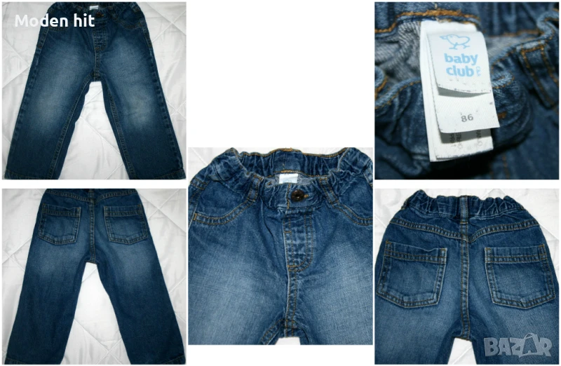 5. Цена 3,50 евро. Дънки C&A Baby Club. Отлични. 100% памук. По етикет са размер 86 см. Дължина: 48/30,5 см., талия с ластик: от 20 до 30 см., ханш: 30,5 см.