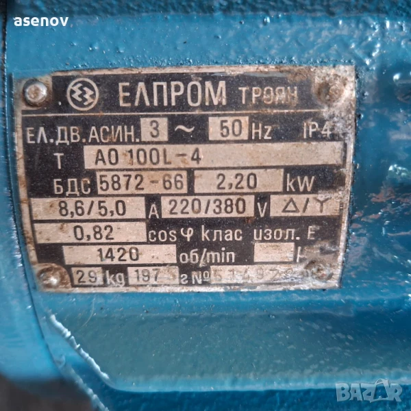 продавам електродвигател с мощност 2,2 кв, 1420 оборота/ мин