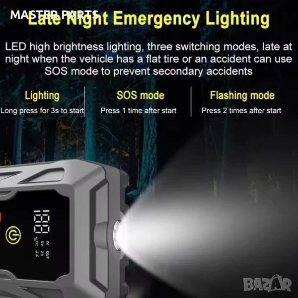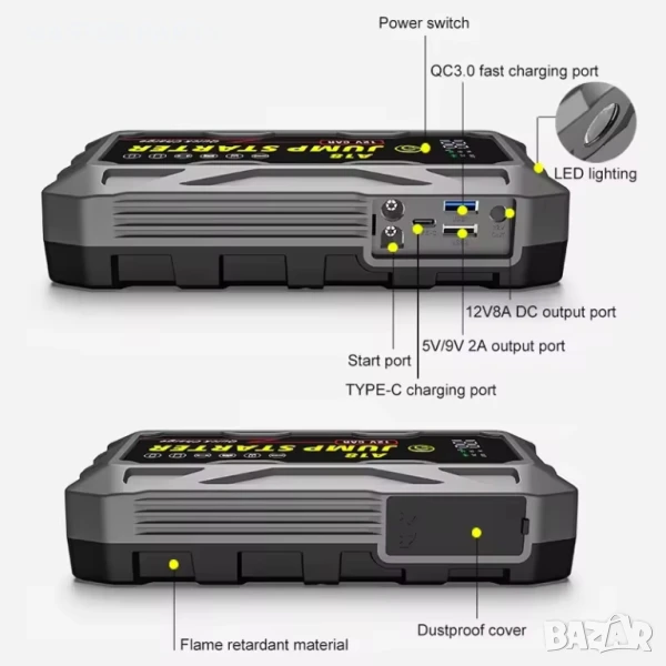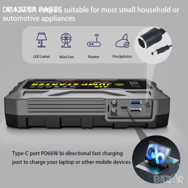 Многофункционалност: Подходящ за леки автомобили, мотоциклети, камиони, SUV, косачки за трева, яхти и всички 12V превозни средства. Освен това служи и като мощен Power Bank за зареждане на вашите мобилни устройства.