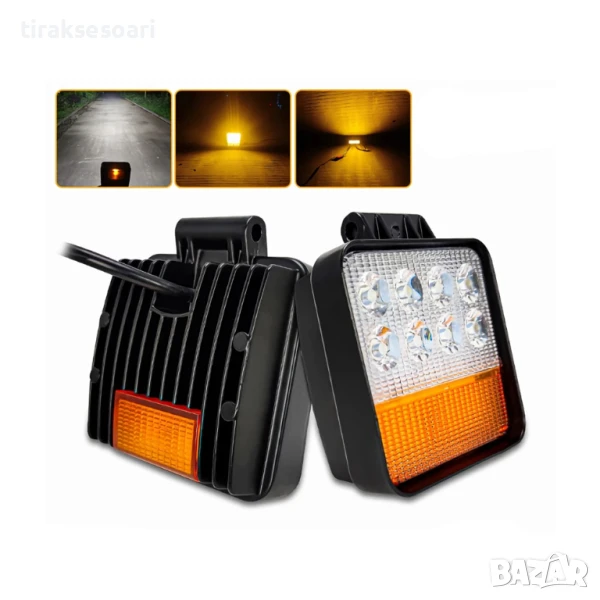 led работна лампа, халоген с жълта светлина, t455, комбинирана led лампа, жълта сигнализация, работно осветление, 10-60v, ip67, ip68, фар за мотокар, фар за багер, фар за камион, селскостопанска техника, алуминиев корпус, led халоген, фар с жълта светлина, удароустойчив фар, водоустойчива лампа, led фар