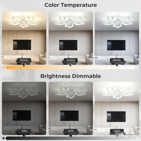 LED таванна лампа с уникална форма на лале с диаметър 60 см, която е изпълнена с модерно изкуство и придава на вашия дом елегантност и мода, която е много подходящо за хол и спалня.