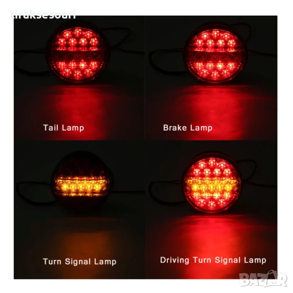 led стоп, кръгъл стоп, 2 броя, t459, диоден стоп, стоп за ремарке, стоп за платформа, стоп за бус, стоп за влекач, стоп за трактор, стоп за мотокар, каравана, водоустойчив стоп, 14см, led стопове 12v, led стопове 24v, 3 светлини, универсален стоп, заден стоп, ярка светлина, безопасност на пътя