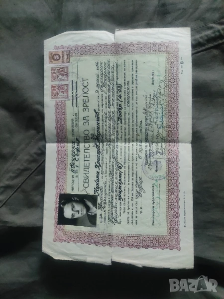 Свидетелство за зрелост II вечерна гимназия София 1947