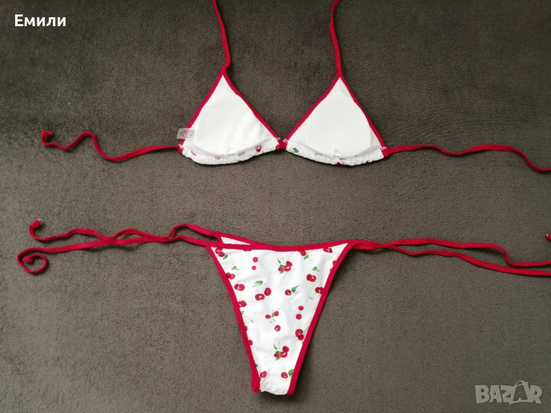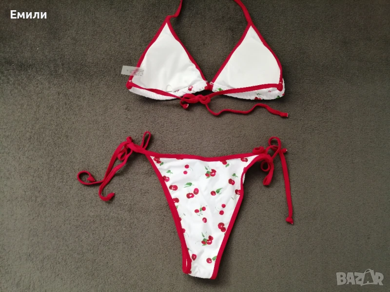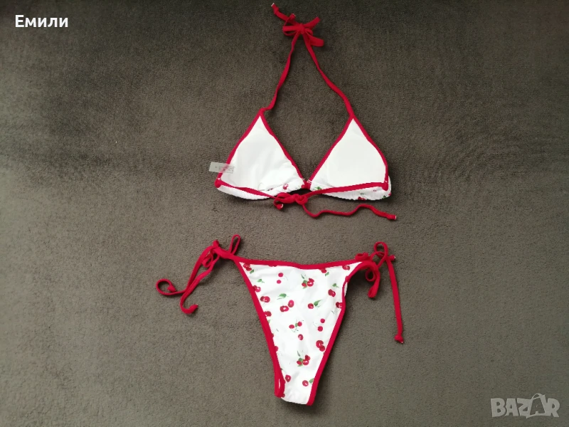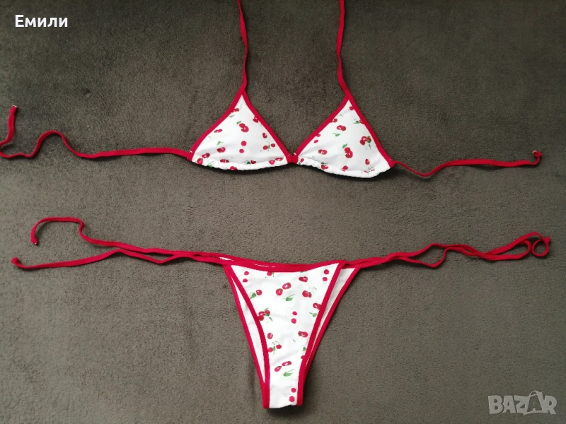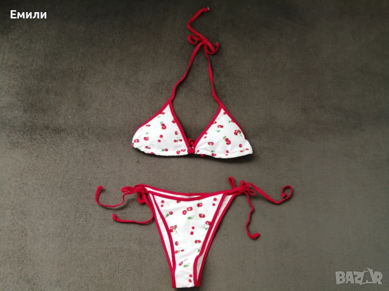 Нов комплект дамски бански от две части с принт черешки р-р M, L, XL → Обява 50899453
