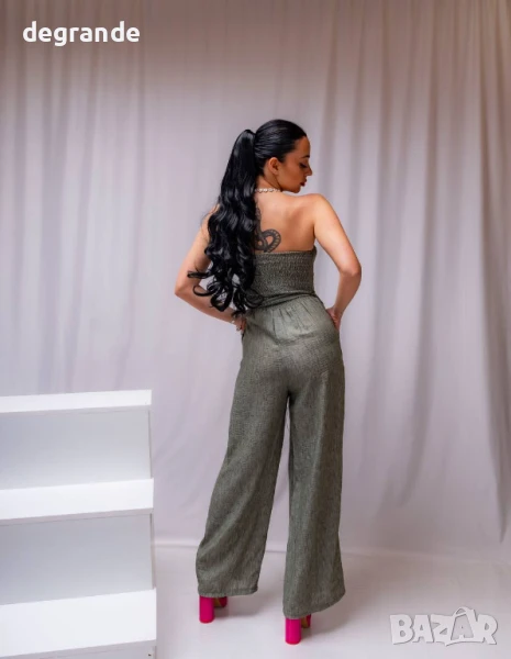Елегантен зелен панталон с коланче и ефектно бюстие → Обява 50899846
