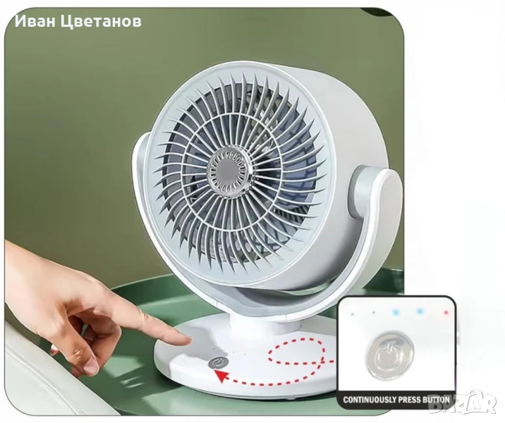 вентилатор с 3 лопатки от ABS, 10W променлив ъгъл и USB зареждане – идеален за лятно охлаждане