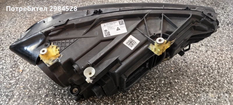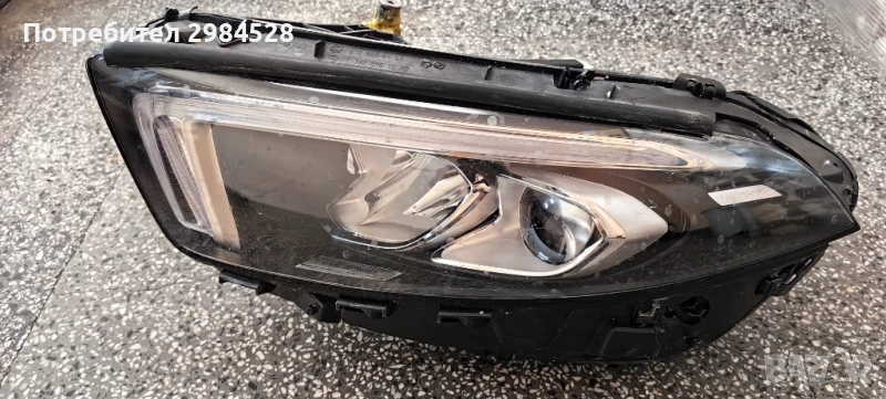 Оригинален ляв фар за Mercedes A Class - Full LED, здраво стъкло, но със следи от капки по вътрешната страна. Здрав корпус, захватите са лепени с някакво не естетическо лепило. Фара се предлага с 3 дни тест период.