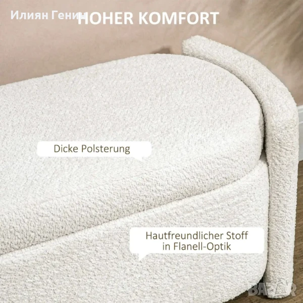 HOMCOM Тапицирана пейка за съхранение, 105 см x 44 см x 45,5 см, кремава/бежова - 200.00лв.