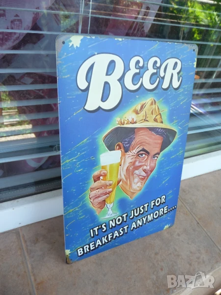Метална ламаринена табела - Beer for breakfast.