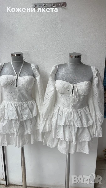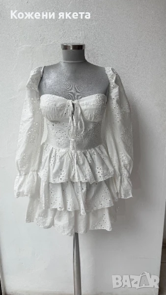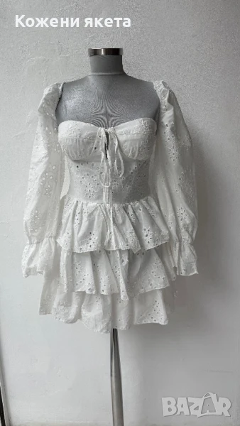 Бяла памучна рокля с бродерия и ръкав → Обява 50902446