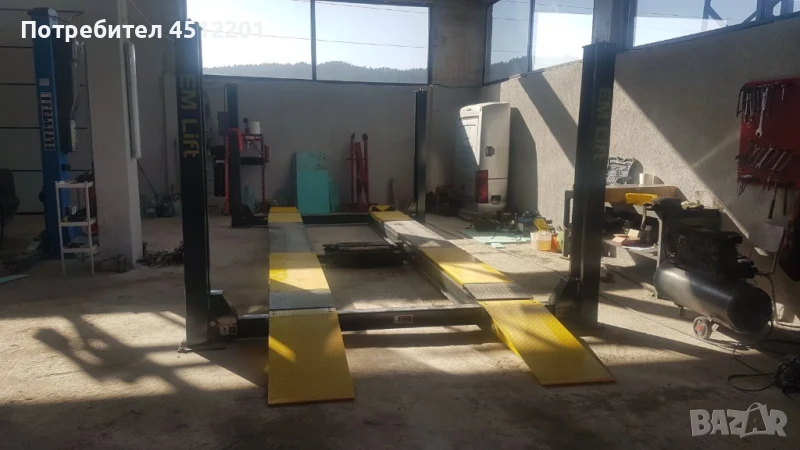 Четириколонен подемник за регулиране на геометрия на автомобили. Подходящ за леки автомобили и микробуси- платформа с дължина 4600мм.