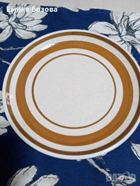 2....Керамична плитка чиния бяла с кафеви ленти диаметър 25 дъно 15 Цена 3 лв