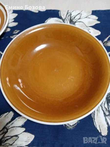 1...Керамична дълбока чиния в кафяво / отвън бяла/ диаметър 28 дъно 14 височина 6 Цена 5лв