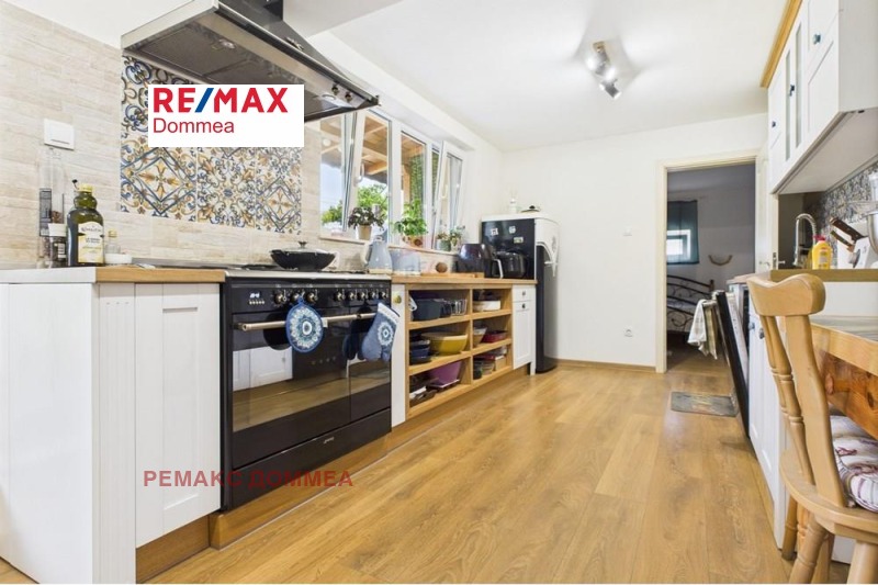 Площта на къщата е разпределена на четири етажа в различни зони за обитаване. Има основна дневна с трапезария и кухня, още една дневна, от която се излиза на двора и обслужва живота на открито, една дневна към детските стаи, дневни с работни кътове за двете деца. Къщата разполага с пет спални, една родителска, три детски спални и две спални за гости. Към всяка спалня има баня с тоалетна. Последният етаж е превърнат в просторна зала за срещи и игра на билярд, откъдето се разкрива невероятна морска панорама. Естествено е помислено за всички необходими помощни помещения, които са необходими за доброто функциониране на къщата - изба, винарна, бойлерно помещение, склад и перално. Къщата разполага със собствен фитнес салон с гледка към вътрешния двор. За лятната жега е помислено да се разхлаждате в малък, но дълбок басейн. Към къщата има четири закрити гаража и свободно място за паркиране в двора за гости. Насладете се на светлината и простора благодарение на великолепното изложение, което включва почти всички посоки без север. Включени са множество екстри като просторна веранда, барбекю и балкон с очарователна морска панорама.