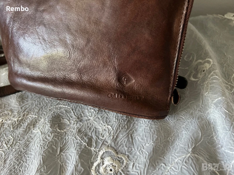 Кожена чанта на марката Claudio Ferrici без забележки с работещи ципове и здрави шевове.