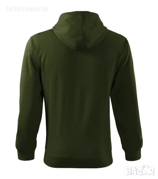 Нов мъжки суичър с ЦИП и качулка в тъмнозелен военен цвят