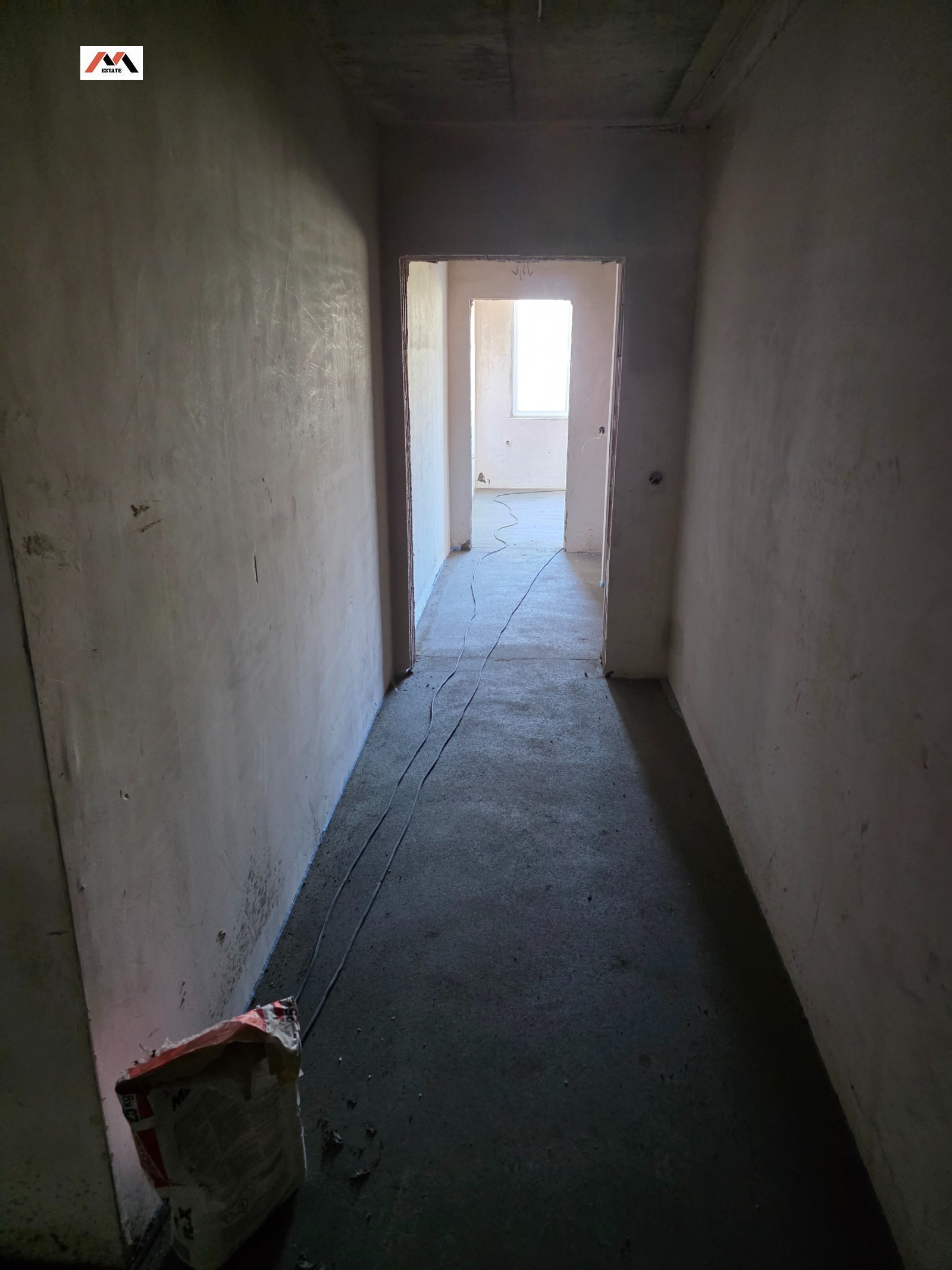 Изложение запад-север,обща тераса на дневна и спалня,баня с тоалетна и отделна тоалетна,две спални, Г-образен коридор с положени вик инсталация за пералня и сушилня!