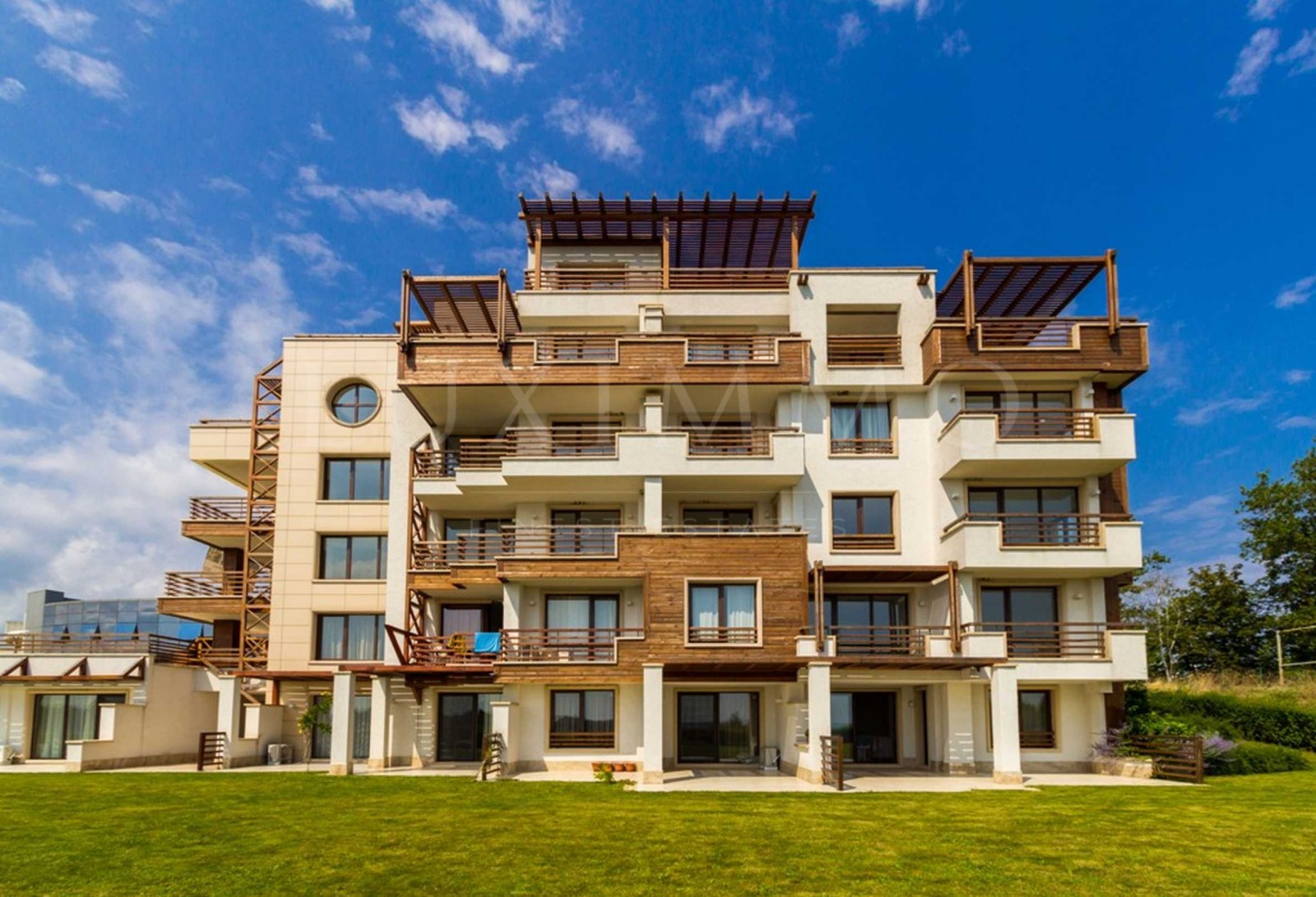 Сградата е построена с използването на висок клас материали и техники, съобразени с морския климат, има добре поддържани общи части, с малък брой апартаменти на етаж.