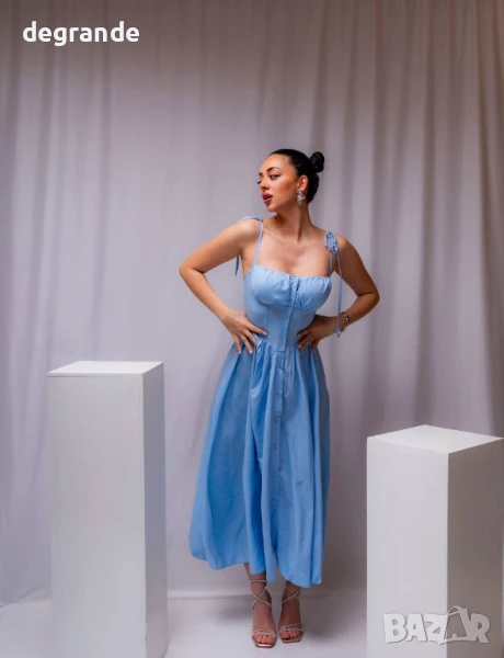 Дамска синя рокля със секси деколте → Обява 50904953