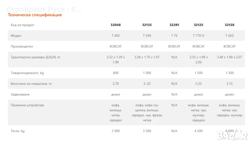 Верижни мини челни товарачи BOBCAT Под наем , Т450, Т590, Т76, T770 H, T650