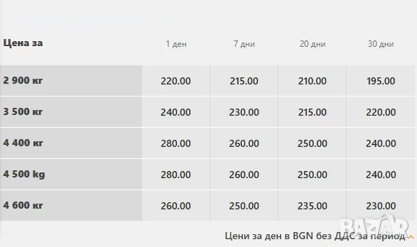 Цената за наем се определя в зависимост периода на отдаване
