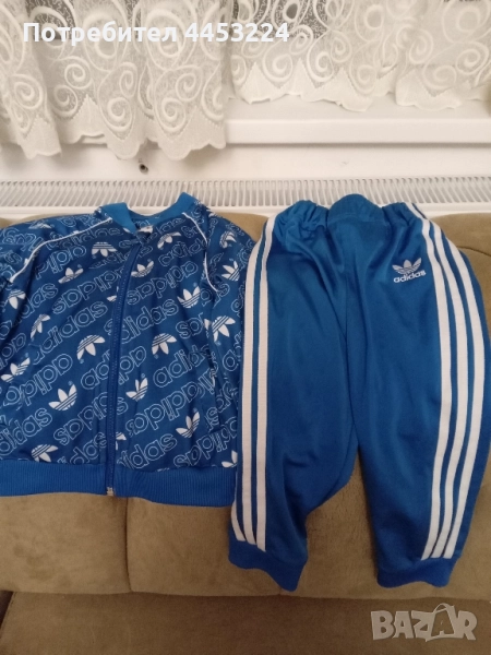 Всичките са в много добро състояние,първите два суичера са за 2-3год, другите два са за възраст 18- 24мес. суичара с качулката на мече е за 9-12мес.,последния е за 4-5год.Всичките са по 5лв. Екипът на адидас е оригинален и е за възраст 2-3год. на цена 15лв. Комплекта с мечето е за 3-6мес. на цена 3лв.,след него комплекта с тракторите е за 18-24мес. на цена 3лв. следващите два комплекта са за 2-3год. на цена 3лв. , зеленият комплект е също за 2-3год. на цена 5лв.,той е доста дебел и последният комплект на спайдармен е за 2-3год. 3-4год. на цена 5лв.