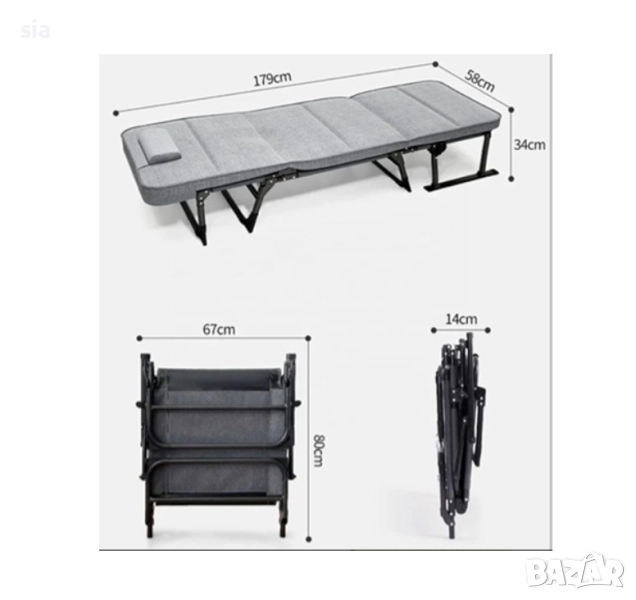 - Размер в разгънато положение на легло : 179 см./ 58 см./ 34 см.