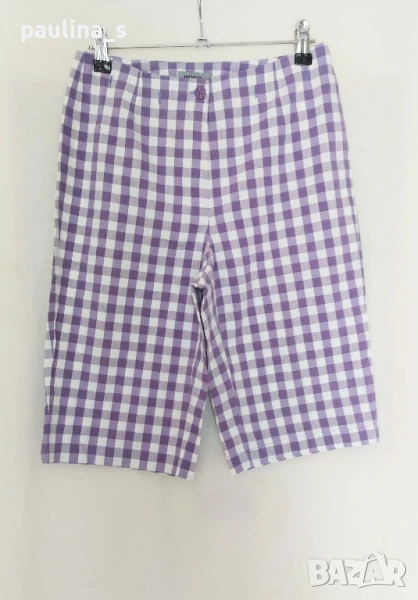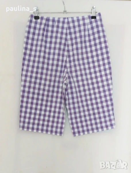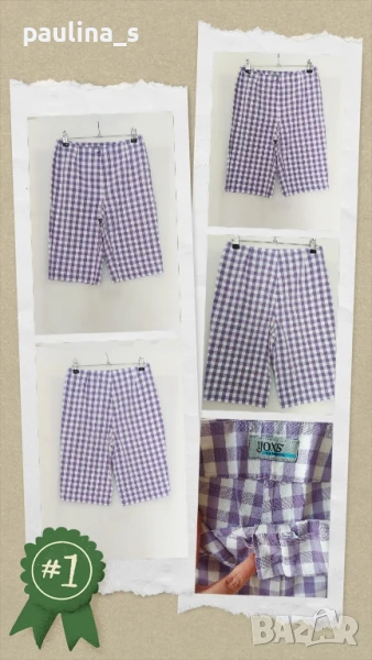 3️⃣. Колаж / XS / M - "J.Joxs". Цената е крайна 14,99лв / 7,5 евро. Дамски(юношески) памучни бермуди в каре. Моделът е обран с обърнато поръбена талия. Цветът е люляк и бяло. Крачолите са скъсени на машина, без дефекти са, скъсано или други подобни.