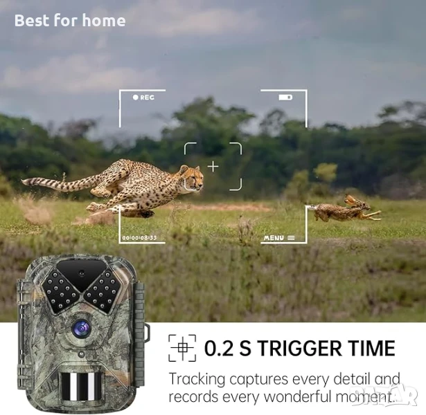 【Скорост на задействане от 0,2 секунди и ъгъл на засичане от 120°】: Ловната камера Coollia е оборудвана с усъвършенствани сензори. След като засече движение, тя се задейства в рамките на 0,2 секунди и заснема всеки детайл от движението на животното. С ъгъл на засичане от 120°, тя ви предлага по-широка зона на видимост и ви позволява да заснемете прекрасни моменти от дивата природа от всички ъгли.