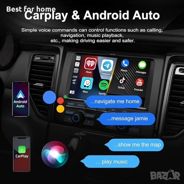 Интелигентно гласово управление: Безжичният адаптер Carplay с интелигентна функция за гласово управление ви позволява да използвате системите CarPlay и Android Auto чрез гласови команди, което значително подобрява безопасността при шофиране. С прости гласови команди можете да контролирате разговори, навигация, възпроизвеждане на музика и други функции, което прави шофирането по-лесно и безопасно.