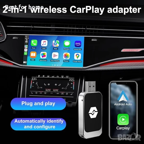 Plug and Play: 2-в-1 безжичният Carplay адаптер е с plug-and-play дизайн за лесна инсталация. Просто свържете безжичното Android устройство за кола към USB порта на централната конзола на вашия автомобил. Устройството автоматично се разпознава и конфигурира, включва Bluetooth на телефона и се свързва с посоченото Bluetooth устройство, за да получи достъп до CarPlay интерфейса за секунди.