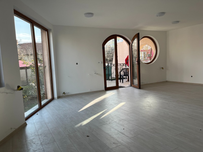 Отдавам под наем нова, луксозна триетажна сграда със разрешение за ползване. Сградата е необзаведена, подходяща за бизнес цели /медицински, здравен, образователен център/. Изключително светла с големи прозоци и тераси. Допълнителни складови помещения, собствен озеленен двор и паркомясто.