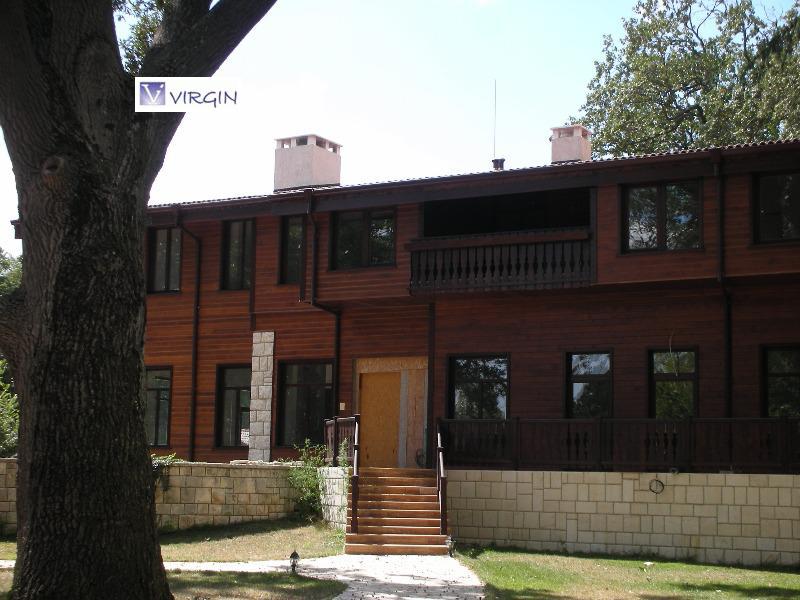 ID 0688 - Представяме на Вашето внимание великолепен имот, находящ се в сърцето на Природен парк 'Златни пясъци'. Сградата е на два етажа и е обособена като две самостоятелни тела /близнаци/, всеки със самостоятелен вход. Възможно е тяхното обединяване при необходимост и обособяването на една самостоятелна къща. Застроената площ на цялата сграда е 295м2 и общо РЗП 590м2 без терасите, които са около 120м2. Има сутеренен етаж с площ 100м2 подходящ за винарна, фитнес или друг вид дейност. Първи етаж на едната сграда включва голямо помещение с камина/ дневен тракт/ с площ около 100м2, кухненски част с трапезария, санитарен възел. Втори етаж - голям апартамент състоящ се от дневен тракт и кухненска част с излаз на голяма панорамна тераса, две спални със самостоятелни бани-тоалет, тоалетна за гости, камина. Втората сграда е обособена почти като първата: Първи етаж - голям апартамент състоящ се от дневен тракт и кухненска част и камина, спалня със самостоятелна баня-тоалет, санитарен възел за гости. От дневния тракт се излиза на голяма тераса с директен излаз към двора. Втори етаж - Апартамент състоящ се от дневен тракт, две спални със самостоятелни бани-тоалет, тераса. Конструктивната височина на първи етаж и в двете сгради е 4.00м , което дава простор и възможности за реализиране на окачени тавани, скрито осветление, вентилация и т.н. Прилежащото дворно място е с площ от 3 140м2, като има допълнителна постройка с площ от 36м2. Двора е много добре поддържан и аранжиран. Изграден и обособен кът за барбекю, собствена градина за производство на екологично чисти продукти. Предимство на този имот, е че попада в Природен парк Златни пясъци , където не е възможно извършването на строителство. Добрият достъп, непосредствената близост до к.к. Златни пясъци и неговите плажове, на отстояние 10км. от гр. Варна го правят едно уникално предложение за постоянно живеене и отдих. Продава се по БДС. Погледнете всички наши обяви на адрес www.virgin2006.imot.bg
