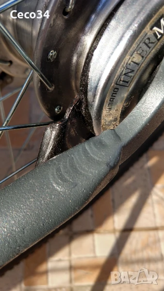 При покупката ми обясниха, че е внос от Германия. Рамката и калниците са били прахово боядисани след почистване. Другото оригинално от немския велосипед са Shimano Nexus главини, спирачки и джаджите към тях. Всичко друго е ново и подменено.