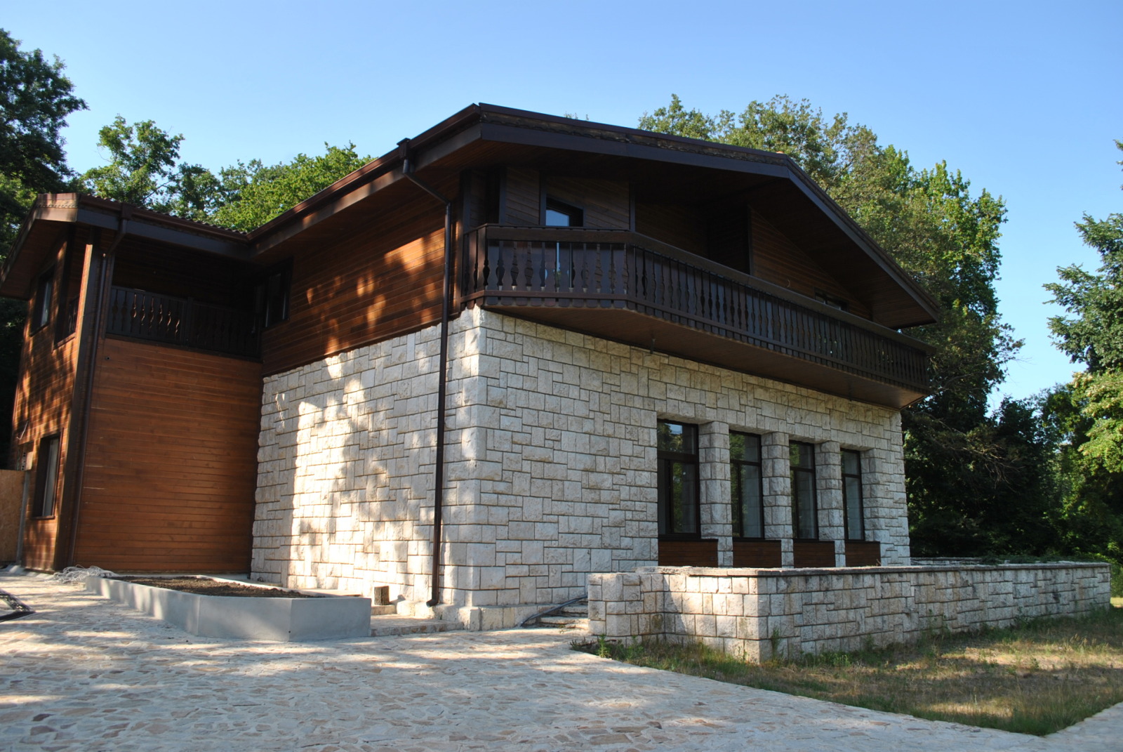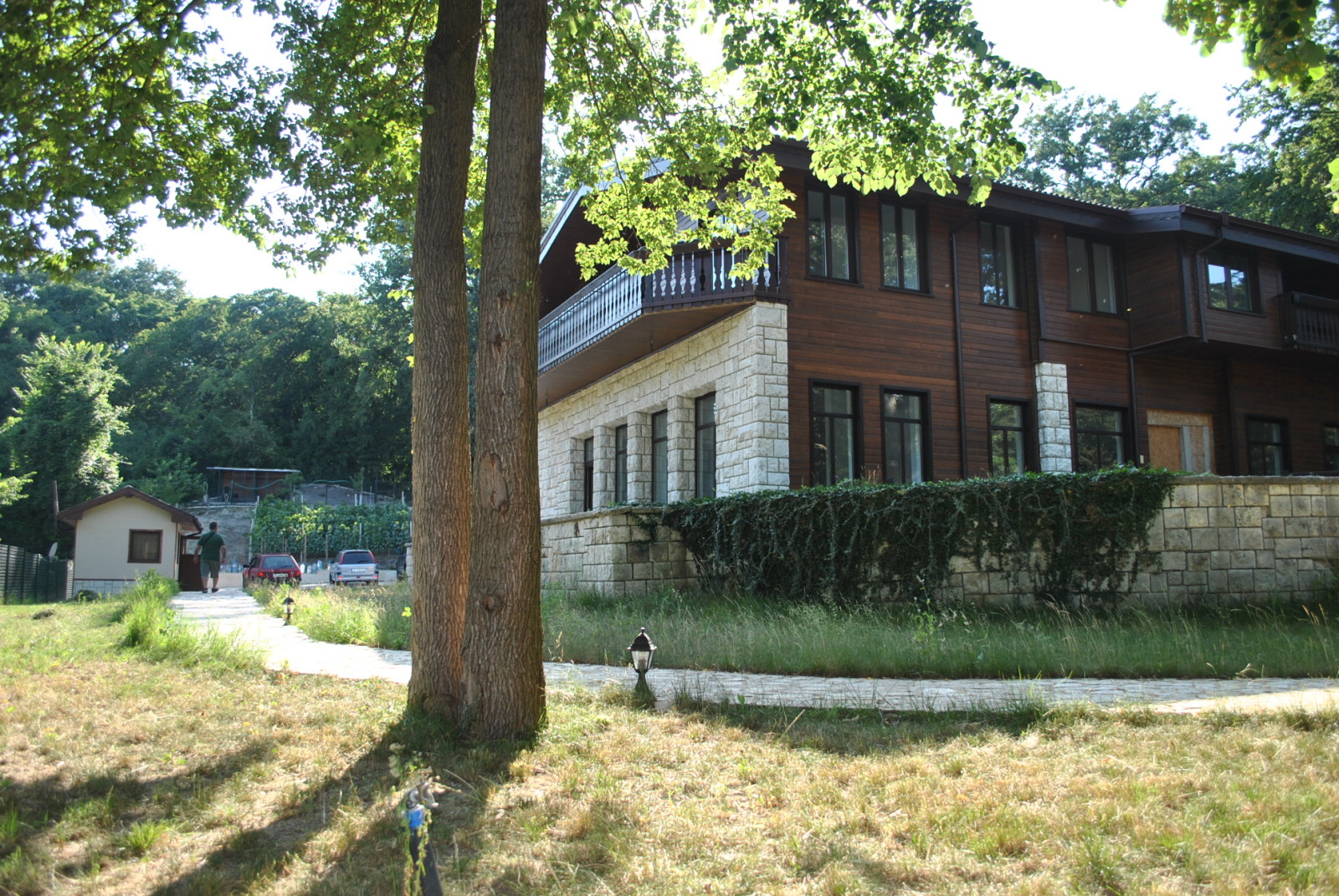 ID 0688 - Представяме на Вашето внимание великолепен имот, находящ се в сърцето на Природен парк 'Златни пясъци'. Сградата е на два етажа и е обособена като две самостоятелни тела /близнаци/, всеки със самостоятелен вход. Възможно е тяхното обединяване при необходимост и обособяването на една самостоятелна къща. Застроената площ на цялата сграда е 295м2 и общо РЗП 590м2 без терасите, които са около 120м2. Има сутеренен етаж с площ 100м2 подходящ за винарна, фитнес или друг вид дейност. Първи етаж на едната сграда включва голямо помещение с камина/ дневен тракт/ с площ около 100м2, кухненски част с трапезария, санитарен възел. Втори етаж - голям апартамент състоящ се от с дневен тракт и кухненска част с излаз на голяма панорамна тераса, две спални със самостоятелни бани-тоалет, тоалетна за гости, камина. Втората сграда е обособена почти като първата: Първи етаж голям апартамент състоящ се отдневен тракт и кухнеска част и камина, спалня със самостоятелна баня-тоалет, санитарен възел за гости. От дневния тракт се излиза на голяма тераса с директен излаз към двора. Втори етаж: Апартамент състоящ се от дневен тракт, две спални със самостоятелни бани-тоалет, тераса. Конструктивната височина на първи етаж и в двете сгради е 4. 00м , което дава простор и възможности за реализиране на окачени тавани, скрито осветление, вентилация и т. н. Прилежащото дворно място е с площ от 3140м2, като има постройка за пазач с площ от 36м2. Двора е много добре поддържан и аранжиран. Изграден и обособен кът за барбекю, собствена градина за производство на екологично чисти продукти. Предимство на този имот, е че попада в Природен парк Златни пясъци , където не е възможно извършването на строителство. Добрият достъп, непосредствената близостдо кк. Златни пясъции неговите плажове, на отстояние 10км. отгр. Варна го правят едно уникално предложение за постоянно живеене и отдих. Продава се по БДС.