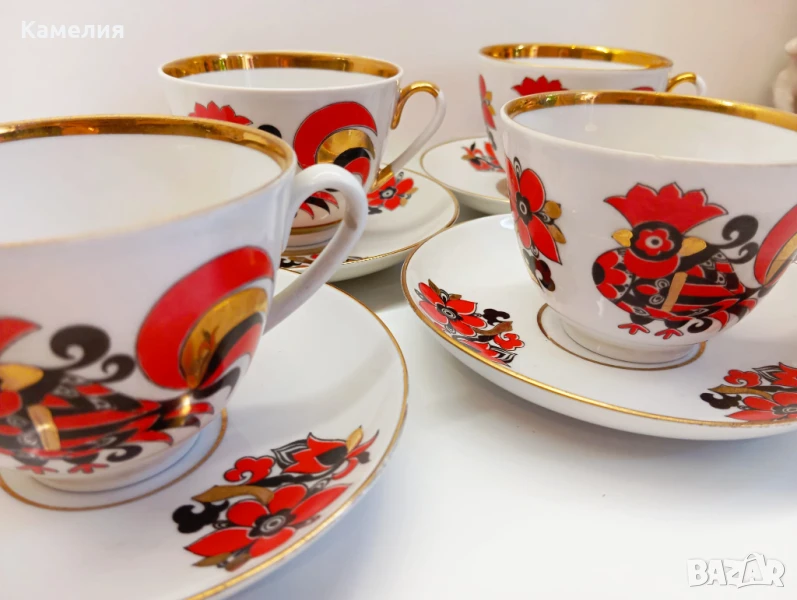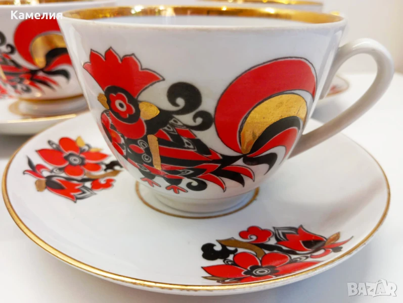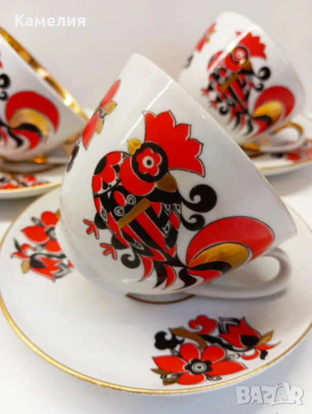Руски чаени сети Петли на ЛФЗ. ВНЕГр. Печати са от различни години. Един двоен сет 88 лв. Налични 9 сетове.