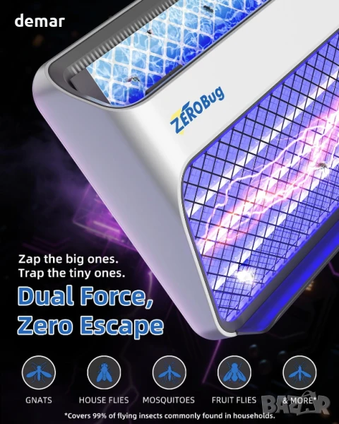 Двойният капан за улов на насекоми на ZeroBug за вътрешна употреба комбинира високоефективна UV светлина и лепкав капан, за да улови и елиминира комари, мушици и плодови мушици с до 5 пъти по-голяма ефективност от стандартните модели. Неговата UV светлина с ниско отблясъци е нежна към очите, но същевременно мощна за привличане на насекоми, което го прави идеален за употреба през нощта. Безопасен и без химикали, той е с огнеупорна конструкция, защитна мрежа и енергоспестяващ LED, който намалява потреблението на енергия с до 60%. Лесен за захранване чрез USB-C и гъвкав за поставяне на стени, куки или плоски повърхности, включва лепящи подложки, винтове и четка за почистване за безпроблемна употреба.