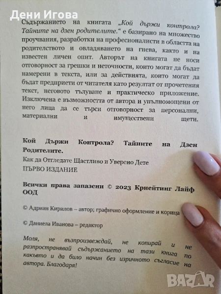 Книга за родители - Кой държи контрола? Тайните на Дзен Родителите, Адриан Кирилов /извън тираж/, снимка 1 - Художествена литература - 50907360 Книга за родители - Кой държи контрола? Тайните на Дзен Родителите, Адриан Кирилов /извън тираж/, снимка 2 - Художествена литература - 50907360 Книга за родители - Кой държи контрола? Тайните на Дзен Родителите, Адриан Кирилов /извън тираж/, снимка 3 - Художествена литература - 50907360 Книга за родители - Кой държи контрола? Тайните на Дзен Родителите, Адриан Кирилов /извън тираж/, снимка 4 - Художествена литература - 50907360 Книга за родители - Кой държи контрола? Тайните на Дзен Родителите, Адриан Кирилов /извън тираж/, снимка 5 - Художествена литература - 50907360 1/5