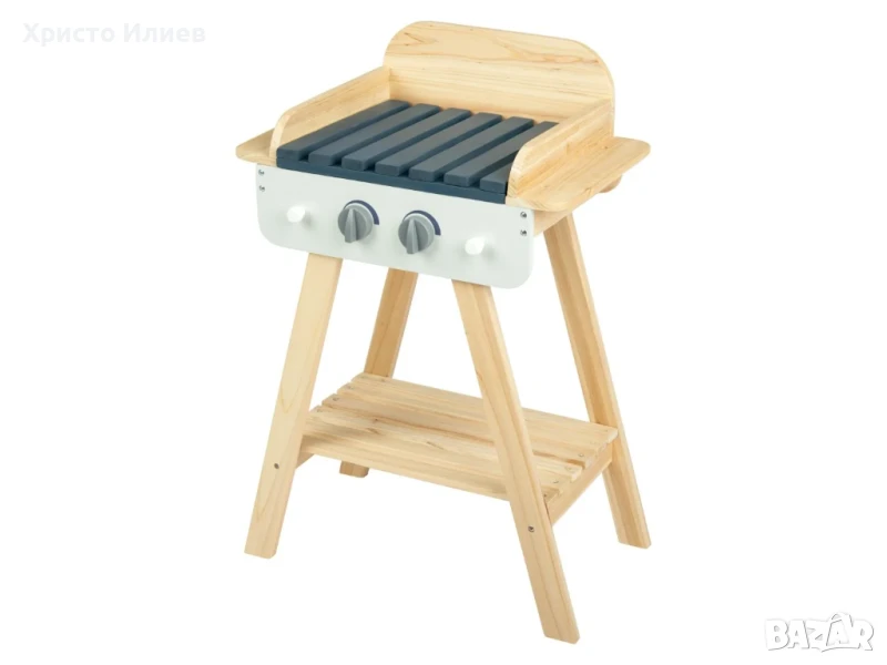 - Здрава дървена скара с място за съхранение отстрани и под зоната на скара