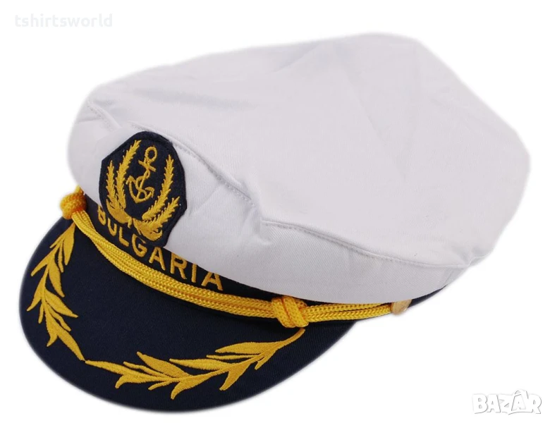 Нова бяла капитанска шапка BULGARIA с Котва, Унисекс