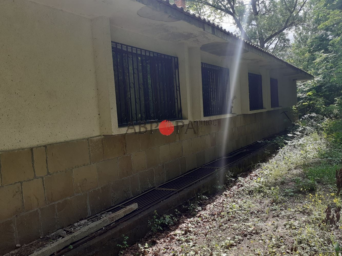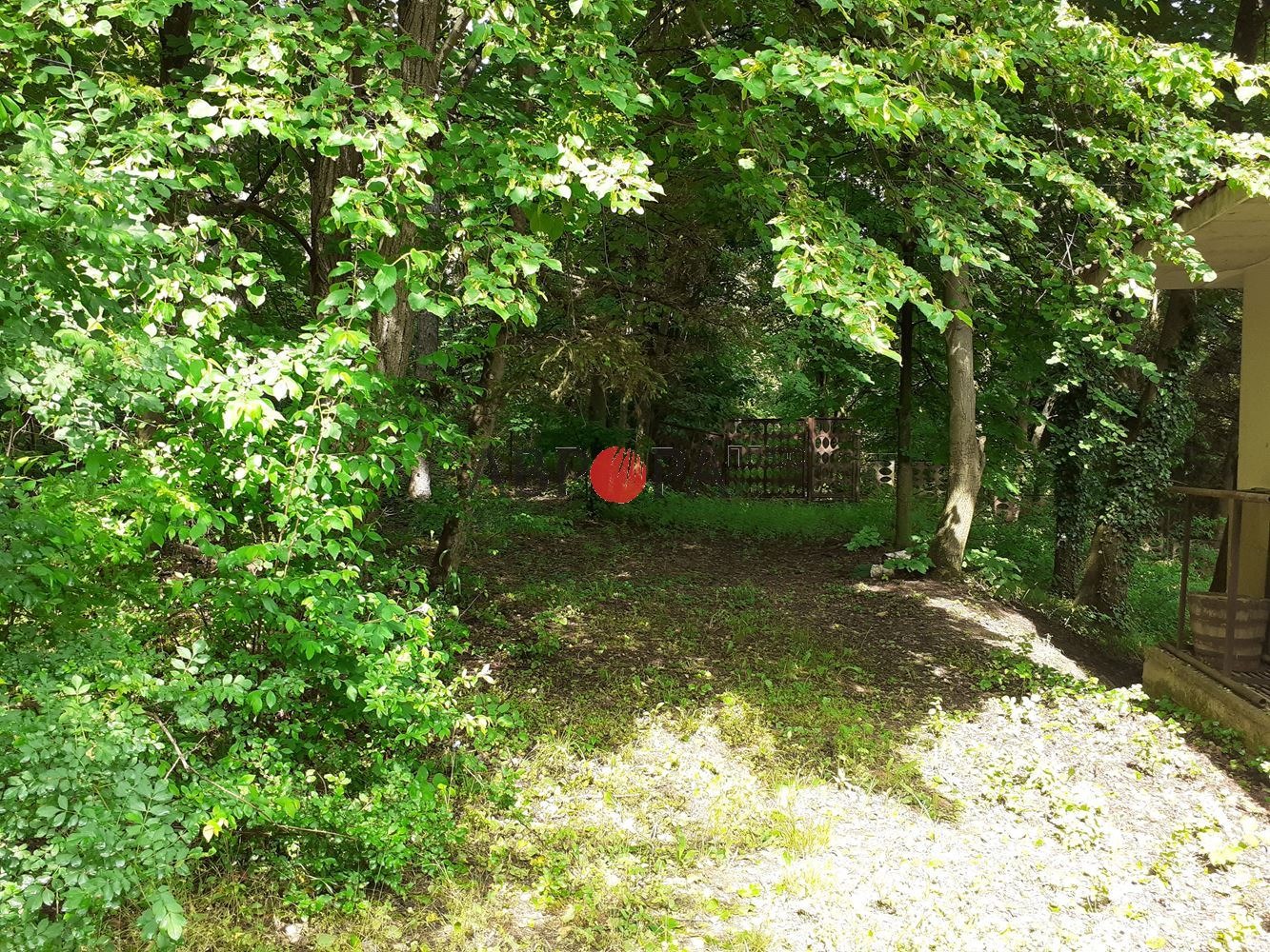 Имота е разположен непосредствено до гората и буйната растителност и дървета естествено обграждат зданието.