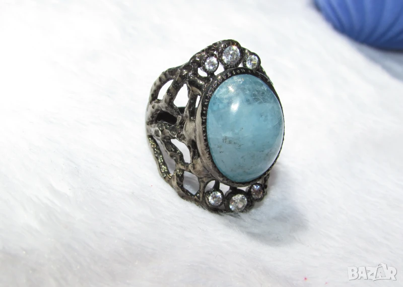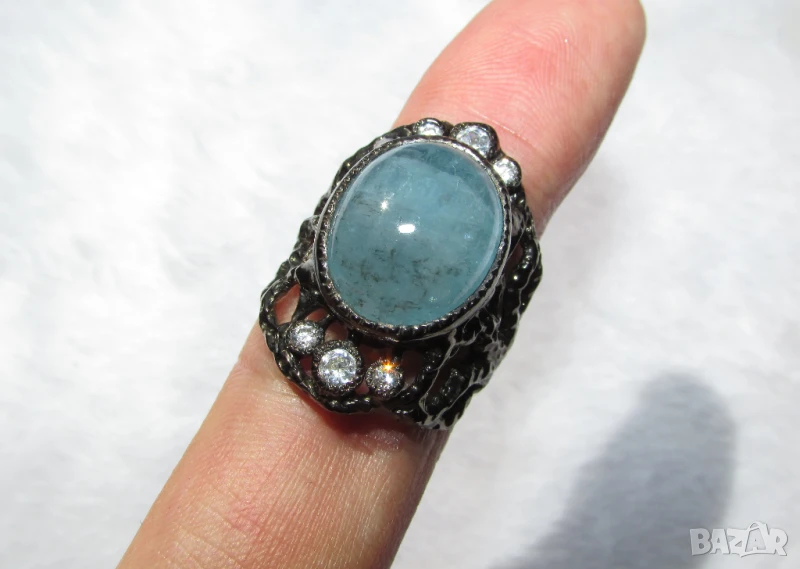 Сребърен пръстен с аквамарин 16x13, тегло 10.8гр. → Обява 50908955