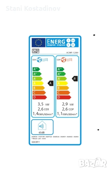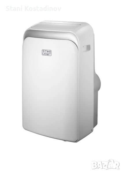 климатикът автоматично ще се рестартира с предишните настройки.Нощен режим– има за цел да ви осигури спокоен сън през нощта с възможно на-ниско ниво на шум и автоматично регулиране на температурата.Функция за изсушаване – тази функция е полезна, когато трябва да водите битка с плесен и мухъл и в горещите летни дни, когато излишната влага създава най-голям дискомфорт.Енергийна ефективност и шумЕнергийна ефективност при охлаждане е А, а тази при отопление е А+. Номиналната консумация при охлаждане е 1350 W, а тази при отопление 1130 W.Нивото на шум на вътрешното устройство може да достигне 65 dB, което прави модела леко шумен.Нашето мнение за продуктаНашето мнение е, че този мобилен климатик Star-Light е способен да осигури оптимално ниво на комфорт във всяко средно по големина помещение. Той има предимството, заради своята мобилност и ниска консумация на енергия. Като се има предвид, че комплектът включва и изпускателни маркучи плюс монтажните аксесоари, смятаме, че цената, за която се продава, е достатъчно привлекателна.