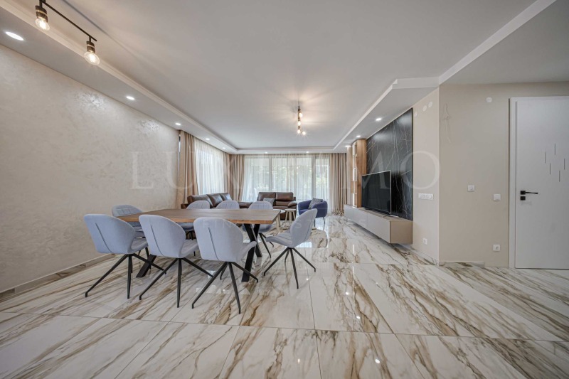 Жилището се намира на 1-ви етаж от 6, с обща площ от 136 кв.м, и се предлага без обзавеждане.