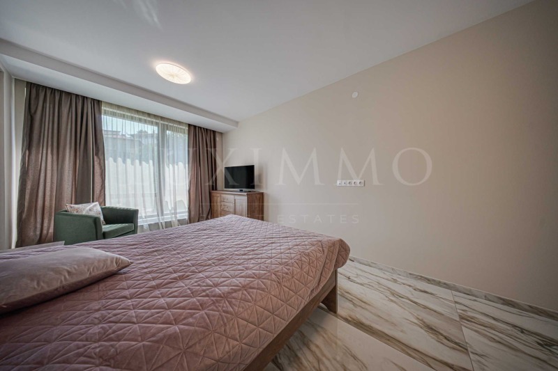 На територията на комплекса има първокласни удобства: жива охрана и 24 ч. видеонаблюдение, фитнес, външен басейн, зона за барбекю, прекрасна голяма градина с поддържани зелени площи и детска площадка.
