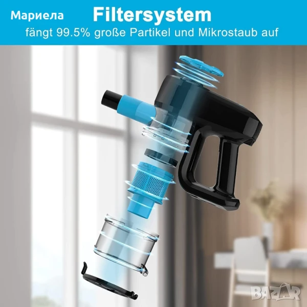 Нашата безжична прахосмукачка с батерии тежи само 1,1 кг. С безжичните прахосмукачки можете да почиствате всички ъгли без никакви ограничения. Можете лесно да я вземете, за да почистите дома си.