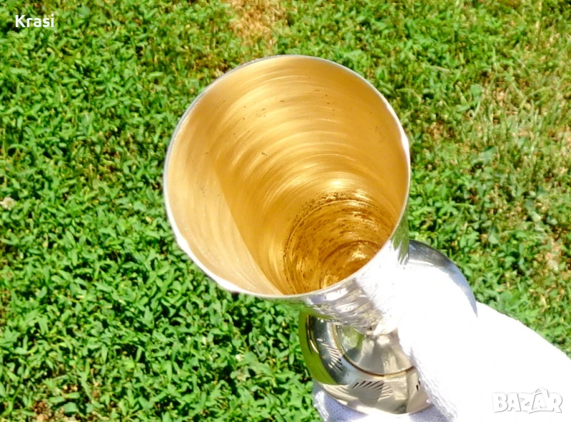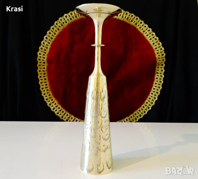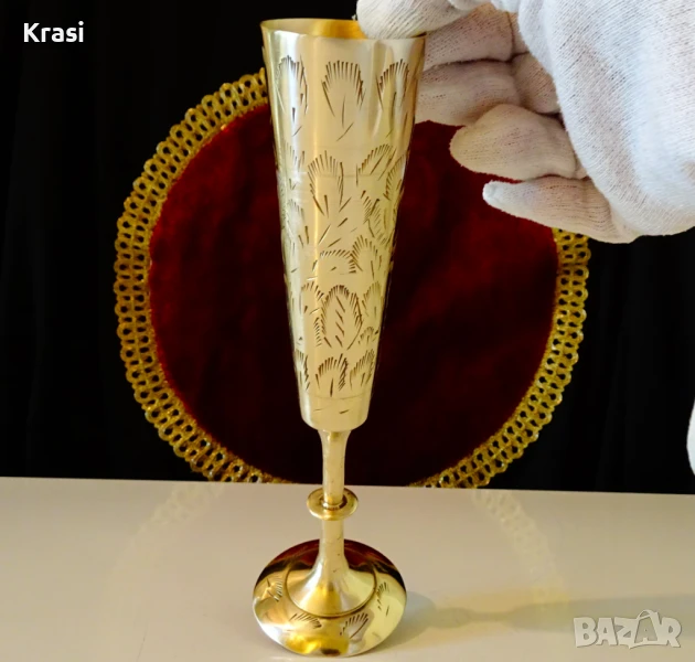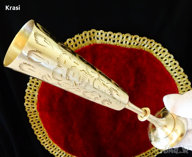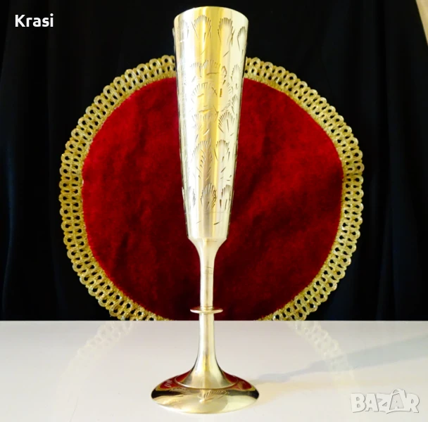 Бронзов бокал за вино 20 см.,200 мл.,гравиран. → Обява 50909837